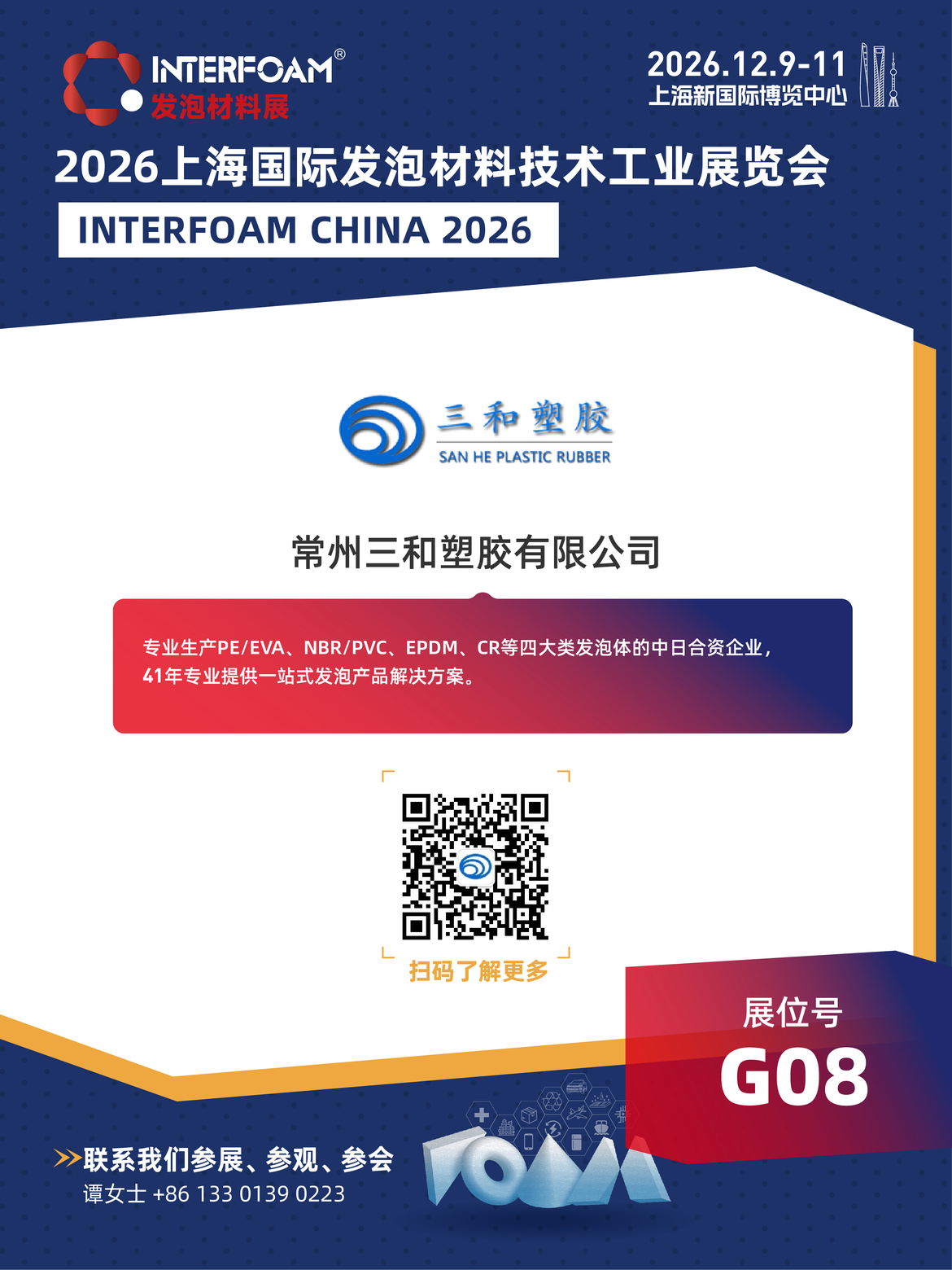 美世嘉首次亮相Interfoam发泡材料展,将展出聚醚和聚酯型PU泡绵,产品主要用于汽车内饰、服饰内衣、医疗、清洁护理、家居用品等领域