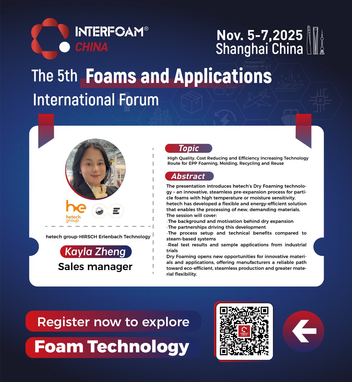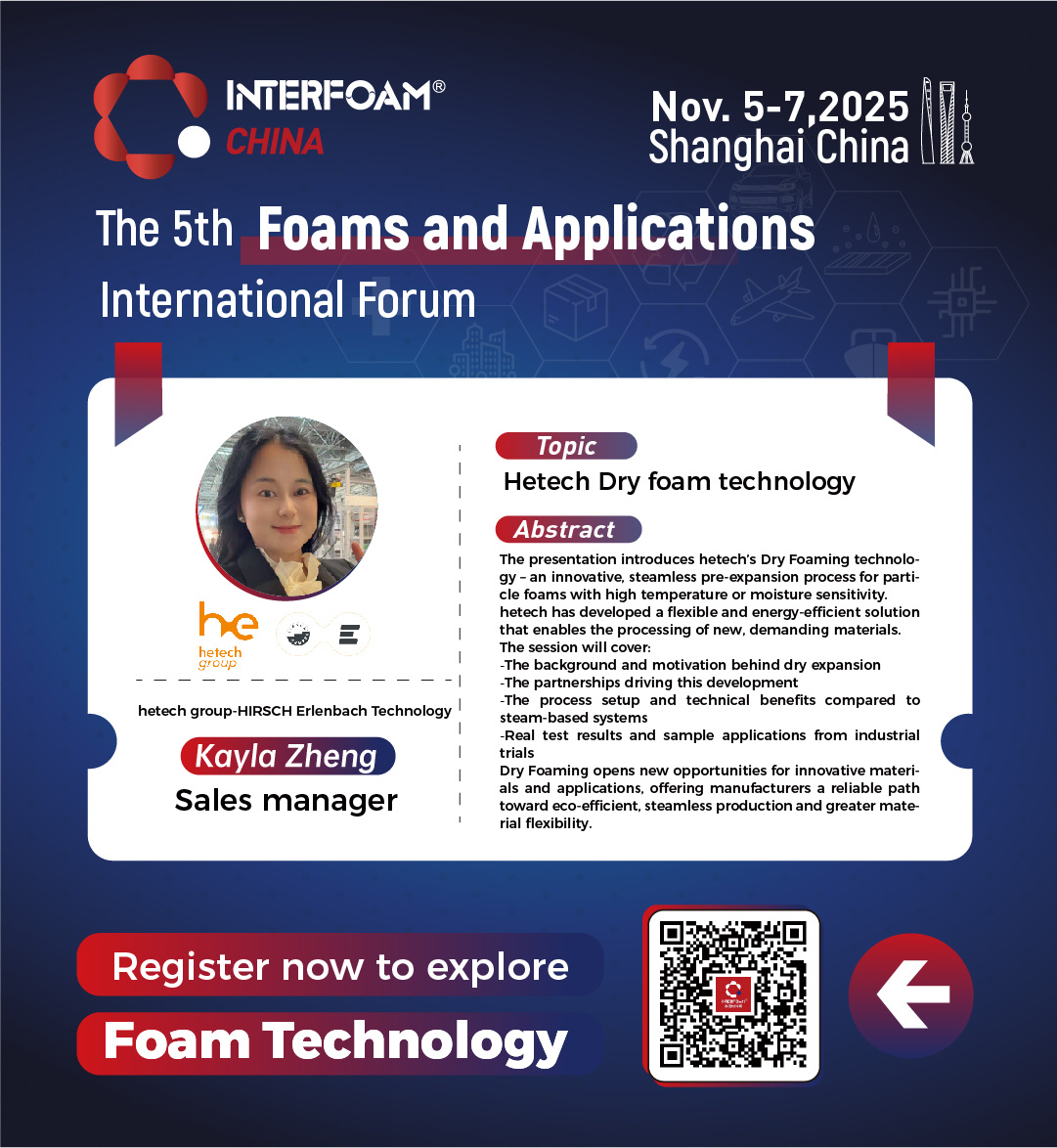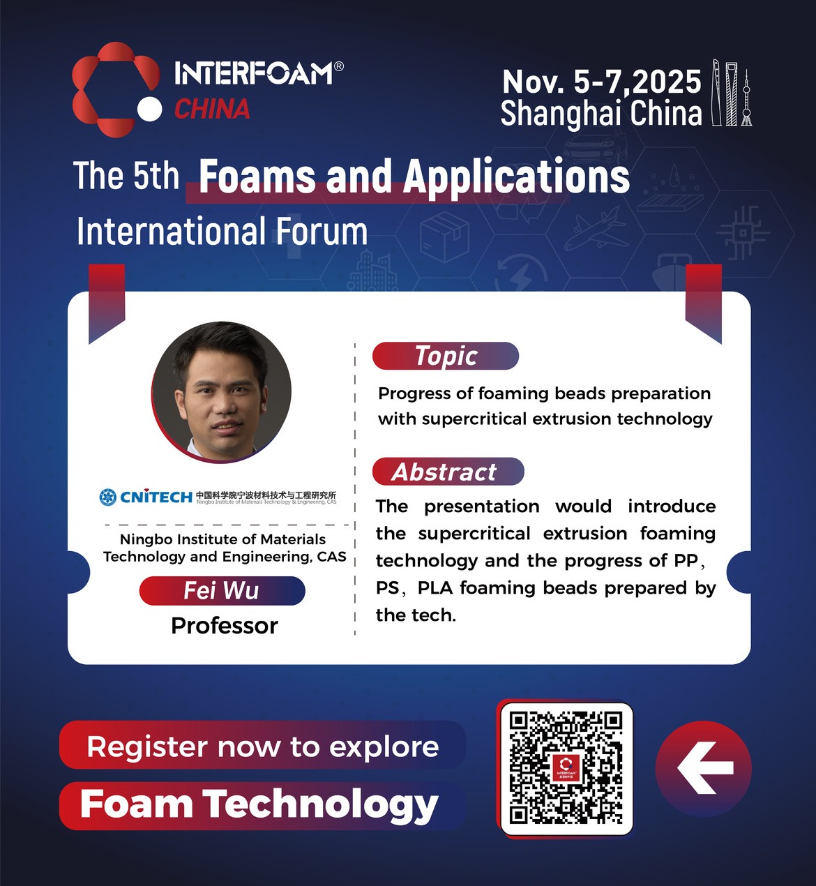 The 5th International Foams and Applications International Forum, with the theme of “New Dimension Foam Boundless Applications”, will open in the Conference Area of Hall E5, Shanghai New International Expo Center from November 5 to 7, 2025. Pre-register now to access high-quality knowledge about foam technology!